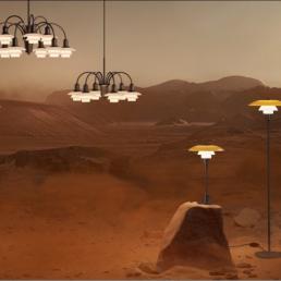 Он включает 3-,6- и 9-элементные подвесные светильники „ lysekrone PH“, настольный и напольный светильники с верхним отражателем с янарно-оранжевым покрытием. Эта акция фирмы – дань уважения и памяти вековому наследию функционального датского светодизайна.