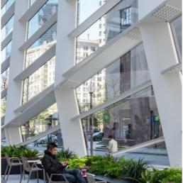 Здание функционирует как место встреч деловых людей и проведения различных мероприятий и представляет собой современное дополнение, повторяющее форму существующего 37-этажного офисного здания, построенного в 1971 году. Этот проект подчеркивает преимущества совместного проектирования за счет объединения групп собственников, проектировщиков и строителей для создания пешеходной зоны с характерной структурой. Подвальное помещение площадью около 70 тыс. м2 переоборудовано для 2-этажной подземной автопарковки.
