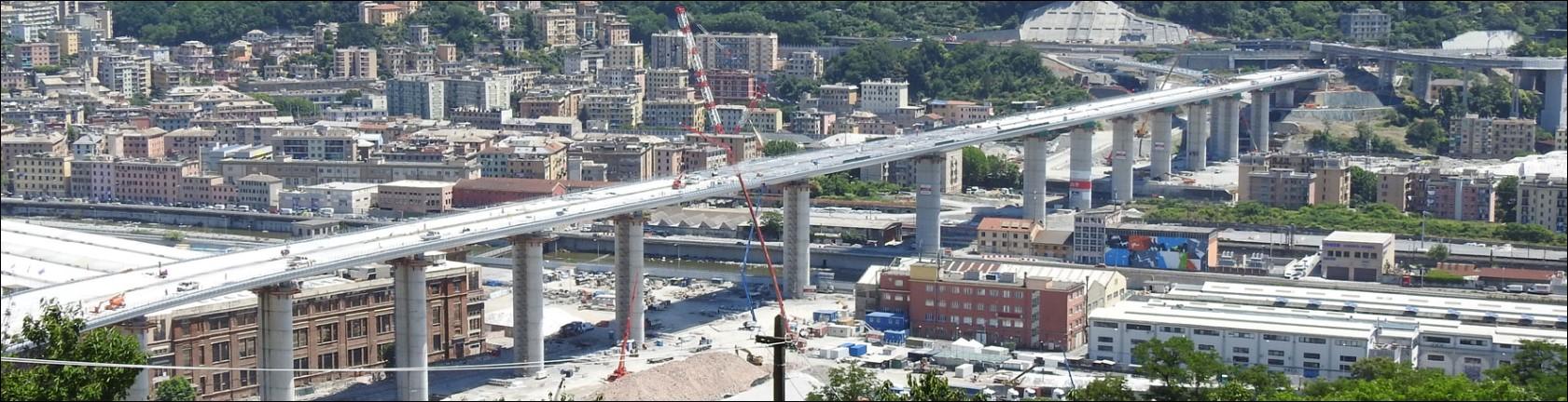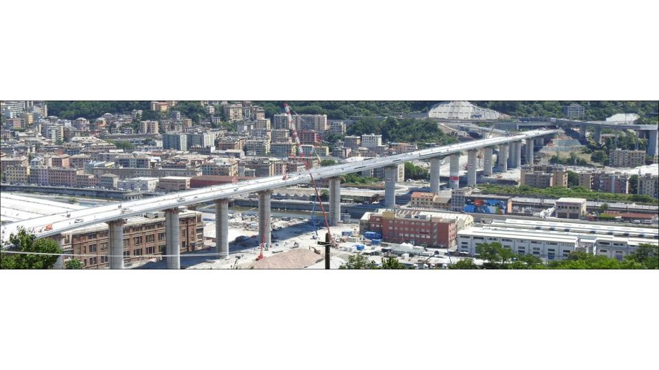Новый мост «GENUA PONTE SAN GIORGIO» над долиной реки Польчевера, который в Генуе соединяет районы Sampierdarena и Cornigliano, открыт в 2021 году .