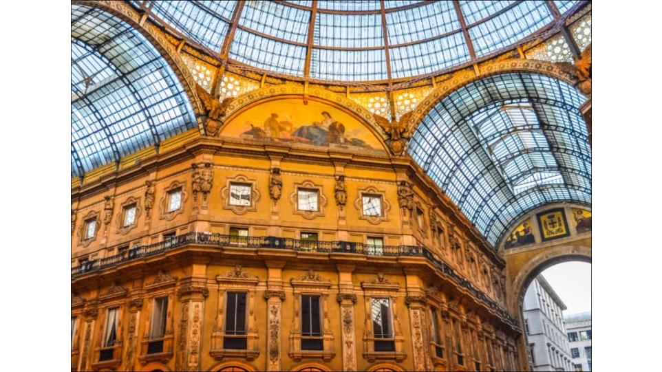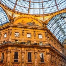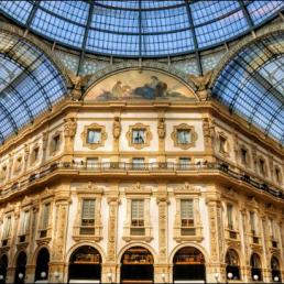 Галерея Виктора Эммануила II — шедевр неоклассической и неоренессансной архитектуры. Его дизайн включает в себя возвышающийся купол из железа и стекла, расположенный на пересечении двух элегантных аркад, создающий воздушное, наполненное светом пространство. Сам купол – инженерное сооружение XIX века, а пол под ним украшен замысловатой мозаикой с изображением гербов крупнейших городов Италии.