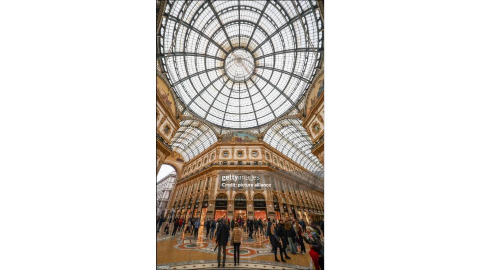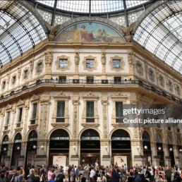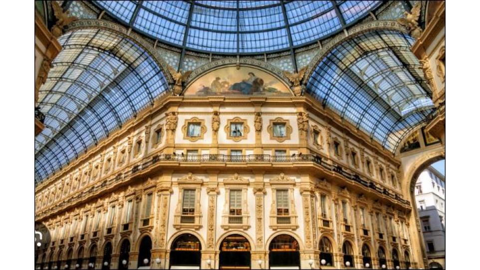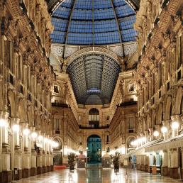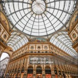 Галерея «Galleria Vittorio Emanuele II», названная в честь короля Италии Виктора Эммануила II (1820—1878), крытый торговый пассаж в центре Милана, один из первых в Европе, строился с 1865 по 1877 гг.