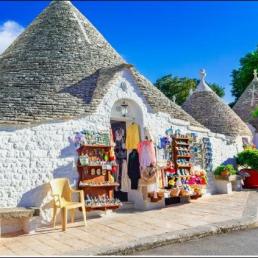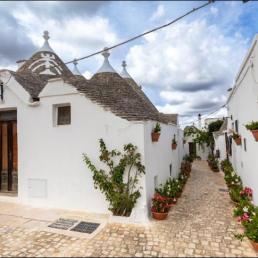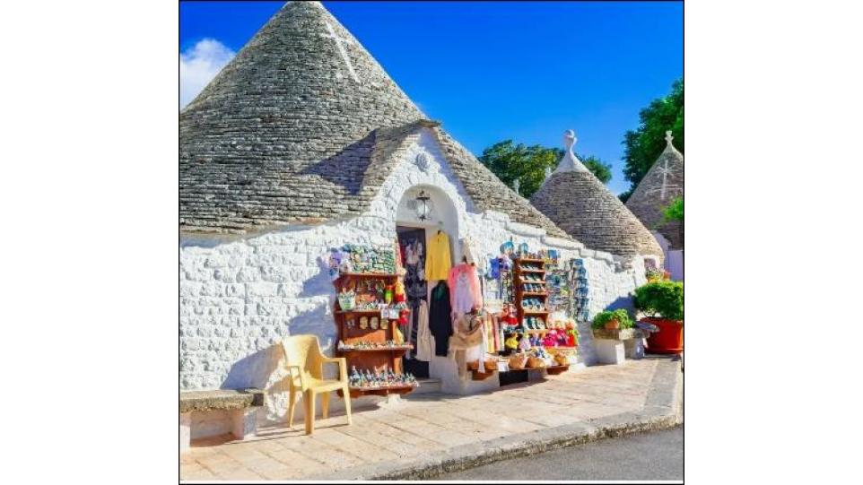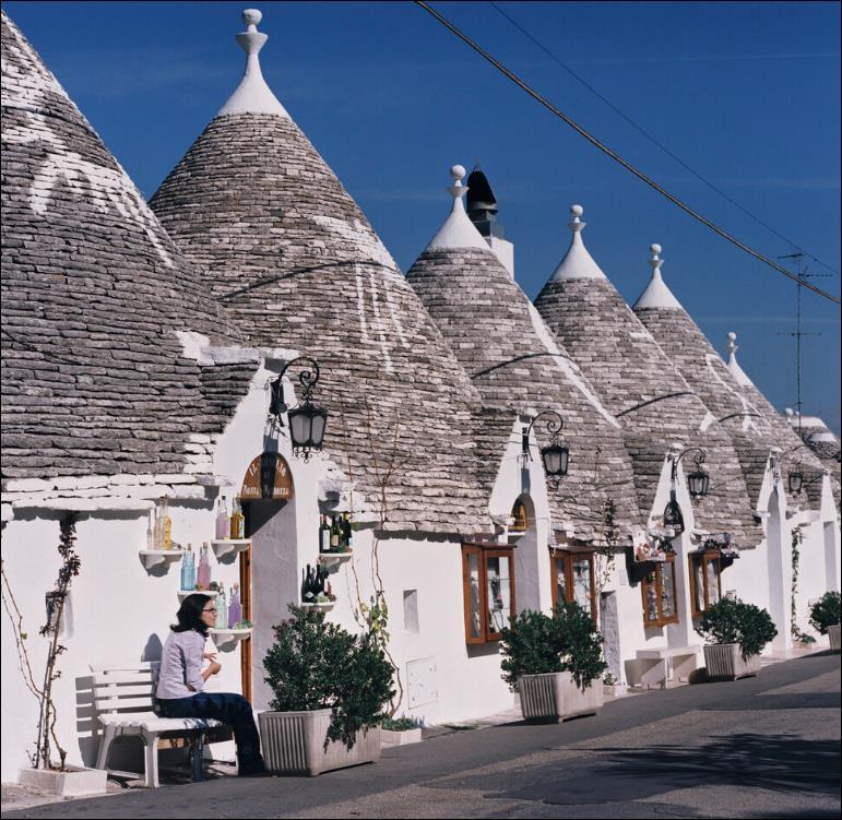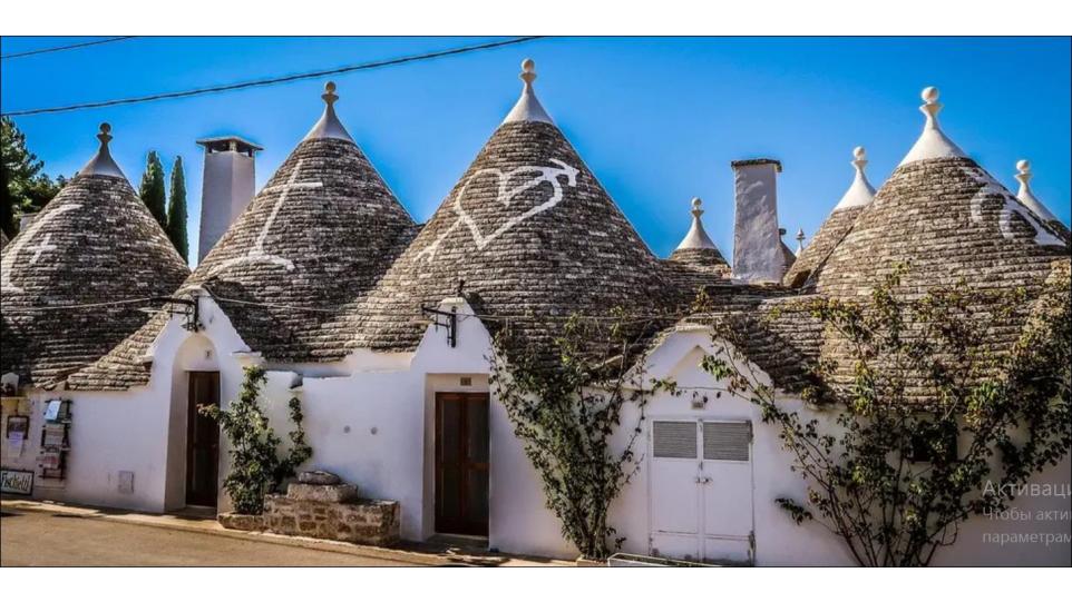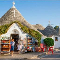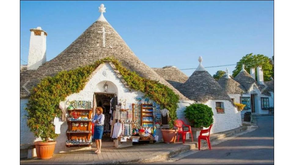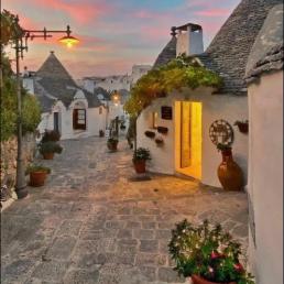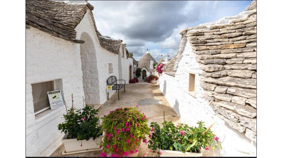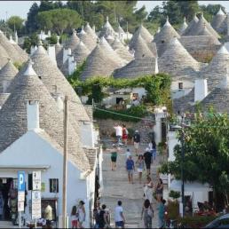 Коммуна Апулия в 1996 году включена в список Всемирного Наследия Культуры ЮНЕСКО благодаря древней экзотической архитектуре жилья. Алберобелло уже многие десятилетия является своеобразным туристическим магнитом, который прославился необычной конструкцией домов сельского типа сухой кладки из камней песчаника (без связующего раствора) и коническими чешуйчатыми крышами. Эти сооружения, носящие местное название “трулли“, напоминают по форме тростниковые хижины аборигенов тихоокеанских островов Полинезии в XVIII веке. «Трулли»- небольшое жилище, построенное из местного известняка, с сухими каменными стенами и характерной конической крышей. Это традиционный и простой тип строения, который можно встретить в Апулии. Трулли обычно квадратные, с очень толстыми каменными стенами.