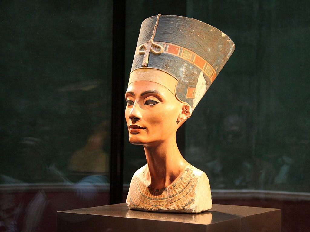 Этот бюст - одно из наиболее известных произведений амарнского стиля и древнеегипетского искусства в целом, стилизованный скульптурный портрет Нефертити, супруги фараона Эхнатона, правившего в Древнем Египте приблизительно в 1351—1334 гг. до н.э.