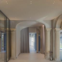 Интегрированные решения, светильники отраженного и прямого света использовались для обозначения путей и придания пространствам глубины. Особого внимания заслуживают даунлайты QUANTUM и WARP в экологичной и адаптивной конфигурации EVO: «Мы смогли индивидуально подобрать оптику, фильтры и отделку. Это стало большим преимуществом для разработки индивидуальной концепции освещения, гармонирующей с каждым помещением.