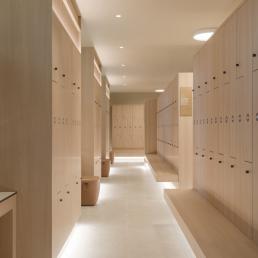 В более уютных зонах был выбран светильник Tara, а в гостиных и зонах отдыха использовались линейные светильники Paseo и Flexlight, такие как Rubber, Rubber Optics и Ribbon, часто скрытые в архитектурных нишах и деревянных панелях. На потолках минималистичные решения, такие как Giotto, Gypsum Cell и Eyelet, чередуются с регулируемыми точечными светильниками Goose, Pound Focus и Navata, которые также хорошо подходят для технических помещений, например, для гостиничного бизнеса. «Выбранный тон освещения сыграл ключевую роль: теплый свет с цветовой температурой 2700 К и высокой цветопередачей идеально подходит для подчеркивания материалов и создания мягкой, уютной и расслабляющей атмосферы, идеально подходящей для сенсорного восприятия спа-салона», — добавляет Аччиаро.