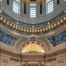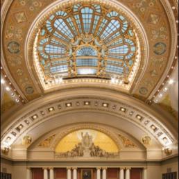 Здание Капитолия в Сен-Поле— самая известная достопримечательность штата Миннесота, внесенная в Национальный реестр исторических памятников США. Архитекторы бюро HGA завершили комплексную реконструкцию, чтобы удовлетворить потребности в реставрации, безопасности жизнедеятельности, доступности, сохранении и долгосрочной функциональности. Ключевые особенности проекта включают в себя увеличенную высоту потолков, реставрацию обширной декоративной живописи и фресок, новые световые люки и новые лифты, соответствующие исторической обстановке. Был выполнен полный капитальный ремонт механических, электрических и сантехнических систем. Внешние работы включали в себя реставрацию камня, замену исторических окон и новую медную кровлю. Изысканная каменная кладка потребовала присутствия мастеров-резчиков на месте в течение нескольких лет. Все площади Капитолия и входы на парадные лестницы были демонтированы, снабжены гидроизоляцией и переустановлены. Работы также включали в себя новое общественное пространство на главной площади, автобусные остановки и меры безопасности. Пешеходный туннель соединяет Капитолий с другими зданиями штата.