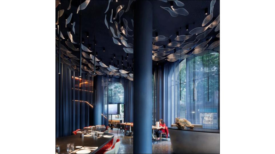 Это гастрономическое заведение, посвященное культуре выращивания голубого тунца. Концепция освещения погружает гостей в идиллическую морскую атмосферу. Три четкие сцены имитируют пространство корабля и подчёркивают центральный элемент: косяк рыб. Светодиодные светильники освещают сто «акриловых» рыб, которые вместе со светом, отражающимся от синих штор, создают образ косяка рыб в морской глубине..Каждое пространство ресторана, представляющее собой либо воду, либо корабли, спроектировано так, чтобы посетитель мог наслаждаться различными видами и взаимодействовать с окружающей средой. Совместно с дизайнерами интерьера и шеф-поварами мы стремились создать разные уровни погружения в атмосферу, сопровождаемые приглушенным, динамичным освещением, напоминающим солнечный свет, проходящий сквозь воду, или различные оттенки света на лодке, чтобы усилить гастрономические впечатления. Программирование DMX имитирует тонкую динамику, которая погружает посетителя в неявное, расслабляющее и выразительное взаимодействие с окружающей средой, создавая тем самым целостный, уникальный в своем роде гастрономический опыт.