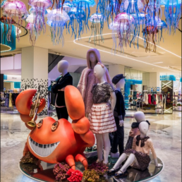 Уникальный концептуальный магазин занимает три этажа: один для премиальных люксовых брендов, второй для современных дизайнеров с зоной обуви и третий этаж для городских трендовых брендов со специальной зоной для товаров для новорожденных и детских садов.