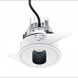 Специальное коллиматорная оптика из оптического полимера («Spherolitlinse») позволила предельно минимизировать овальное выходное отверстие (72x35 мм), что в сочетании с большим защитным углом практически делает этот светильник неслепящим и незаметной «черной точкой» на потолке.