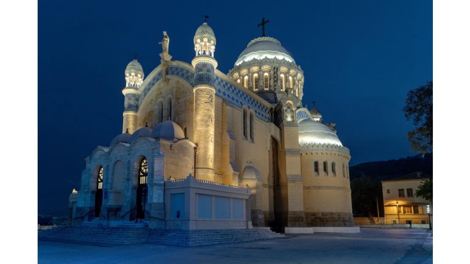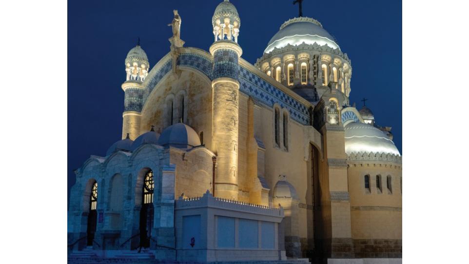 В темное время суток освещенный храм служит своеобразным световым ориентиром для судоводителей в алжирском заливе – он надежно виден с моря на удалении двух морских миль.