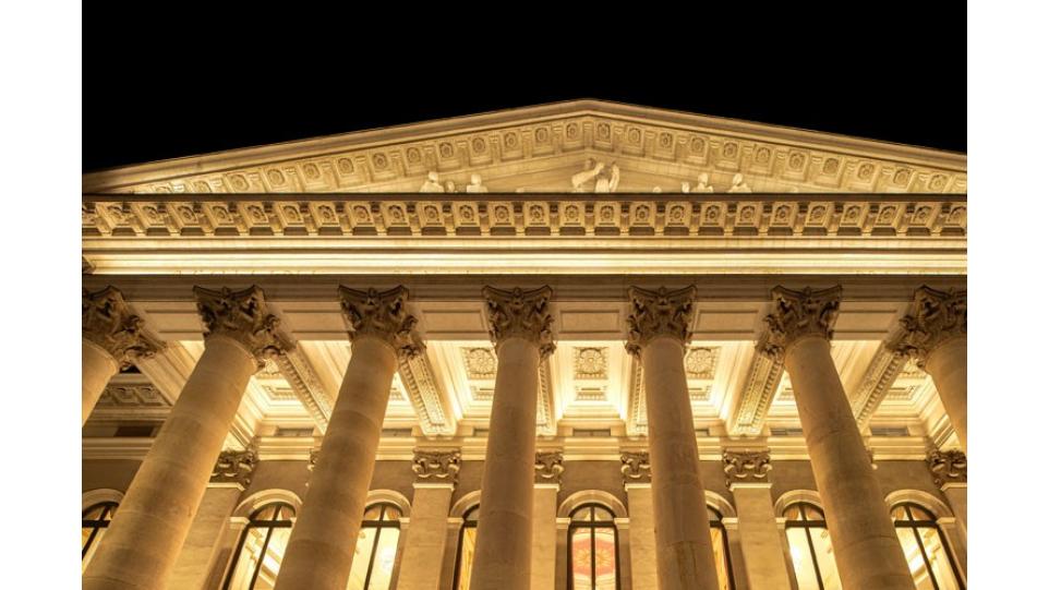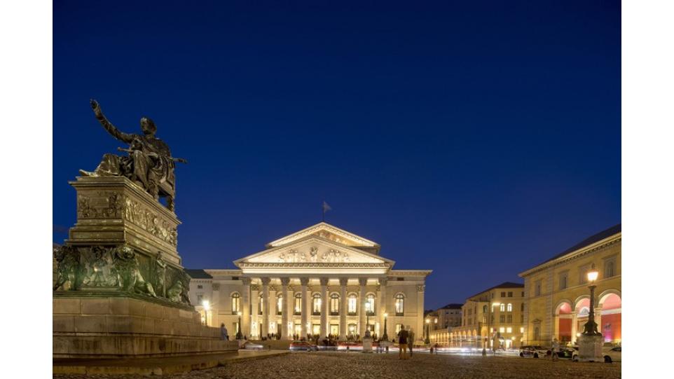 ….Внутреннее великолепие Национального театра Баварии теперь находит свое отражение и в новом блеске фасадного освещения и формирует своеобразный симбиоз интерьеров фойе, зала и фасада…..