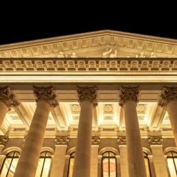 « …..Новое светодиодное освещение привнесло новую лучезарность в харизму театра, подчеркивает великолепие архитектуры классицизма….