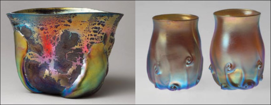Вазы и светильники из выдувного стекла Тиффани – также значительный вклад Америки в историю декоративно-прикладное искусство стиля «Ар-Нуво». Тиффани назвал свое стекло "Favrile glass" (от латинского “fabriles” – «сделано вручную»).