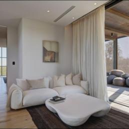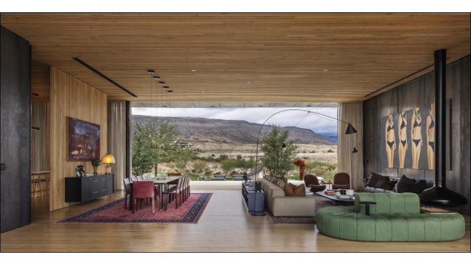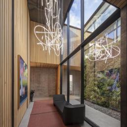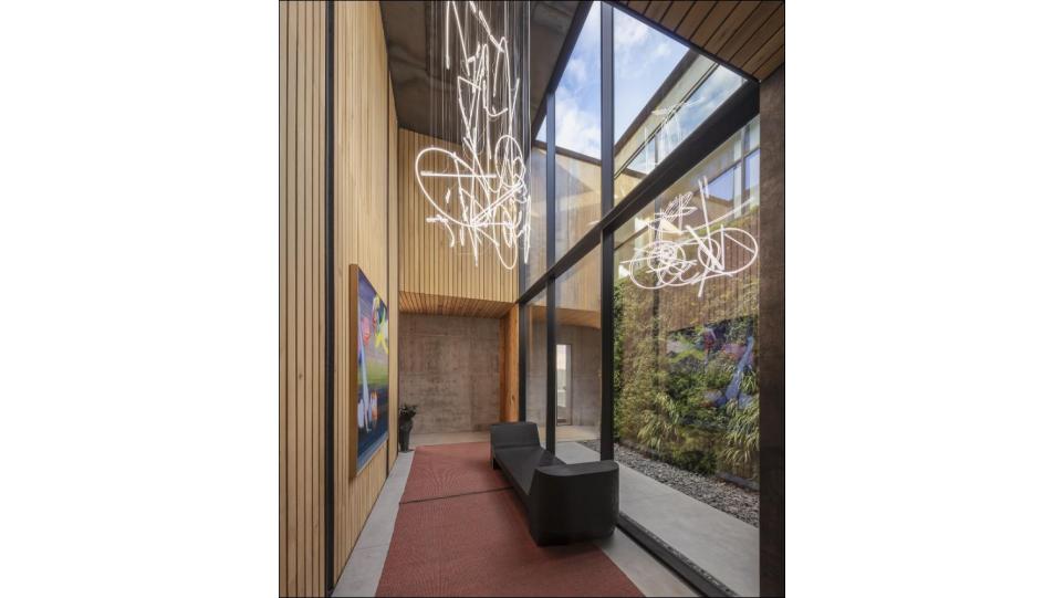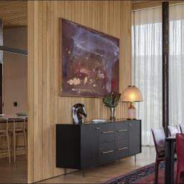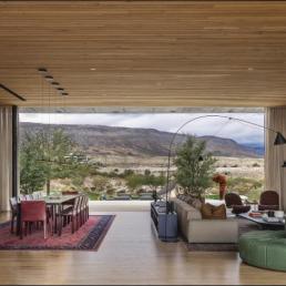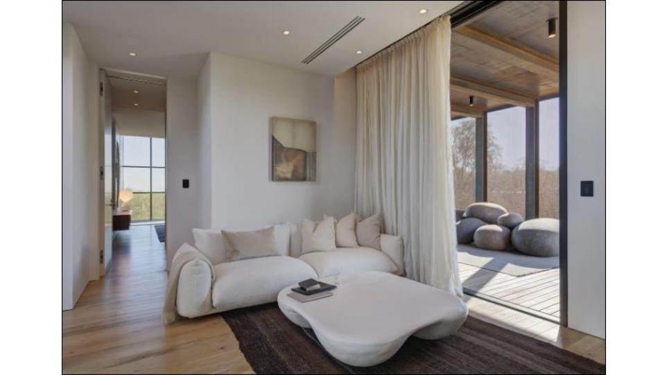 Средства внутреннего освещения помещений„Red Rock Residence“ максимально интегрированы в архитектурно-строительные элементы и мебель интерьера.