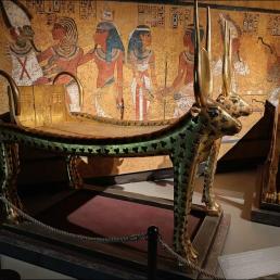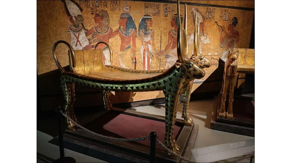 Дизайн экспозиции Галереи Тутанхамона, атриума музея и лестницы был разработан немецкой студией Atelier Brückner. Среди экспонатов музея — находки из гробницы фараона Тутанхамона и 3200-летняя скульптура египетского фараона Рамзеса II.