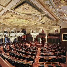 Цель последней реконструкции зала палаты предствителей (2022 год) состояла в том, чтобы придать ей исторический облик и атмосферу конца XIX века, используя современные средства и системы управления освещением.