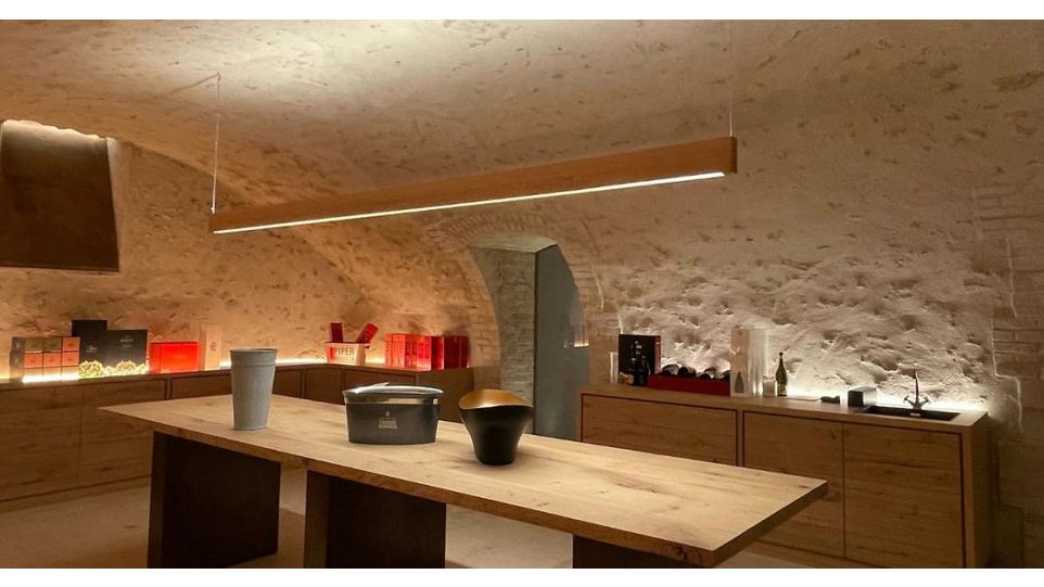 Расположенное в нескольких шагах от величественного Реймского собора XIII века, здание гармонично сочетает в себе историческую значимость и современную изысканность. Среди его самых впечатляющих пространств — сводчатые погреба — тихие, величественные и хранящие многовековую историю виноделия, — которые теперь служат местом для дегустации вин.