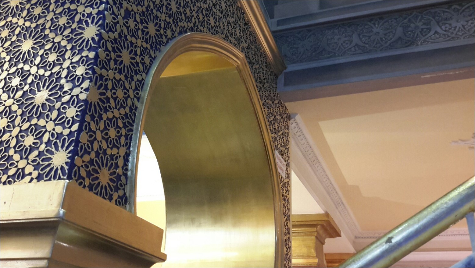 Формы и декоративная отделка в натуральные золотистые тона предметов меблировки, скульптур, карнизов, обрамлений росписей на стенах и потолках погружают посетителей в атмосферу дальних стран и загадочную ауру экзотических городов.