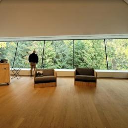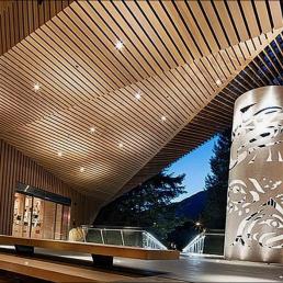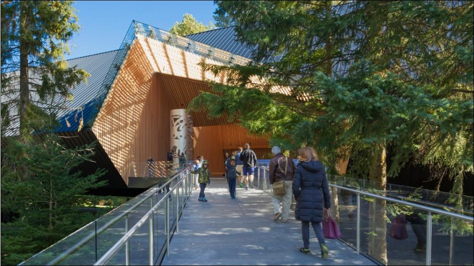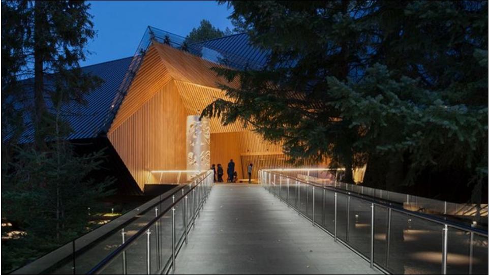 Музейный комплекс в стиле конструктивистской архитектуры ХХ века органично вписан в чарующий лесной ландшафт, при его строительстве были широко использованы породы деревьев, произрастающие в штате Британская Колумбия – гармония архитектуры и природы