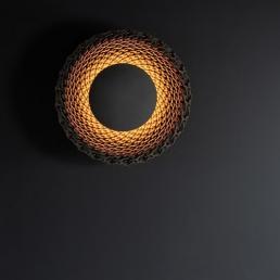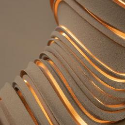 Структура изделия позволяет свету проникать через скрытые отверстия и плавно распространяться по текстурированным поверхностям. Внешняя форма, представляющая собой комбинацию плавных изгибов, выделяется и подчеркивается контурами. Нам нравится думать о свете как о среде, которой можно придавать форму жидкости; Поверхности служат источниками излучения, а тени определяют глубину.