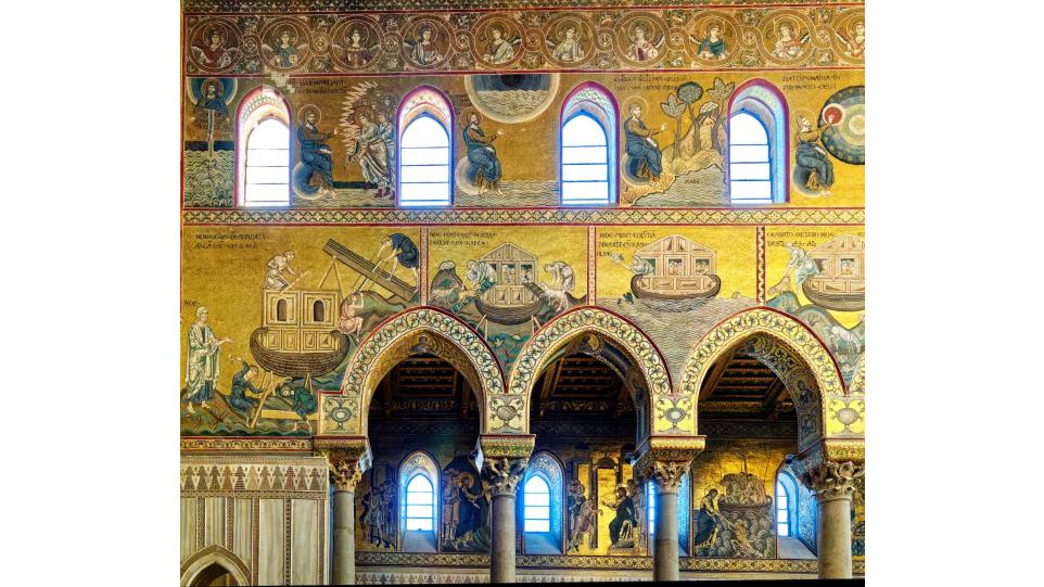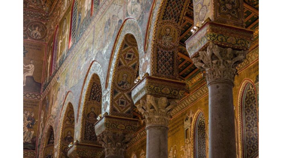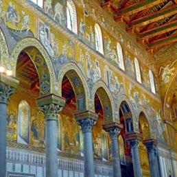Duomo di Monreale - значимый памятник арабо- норманнской архитектуры XII века, заложенный сицилийским королём Вильгельмом II в 1172 году.. Cтроительство завершилось в 1186 году. В 2015 году ЮНЕСКО включила собор в Список объектов Всемирного культурного наследия.