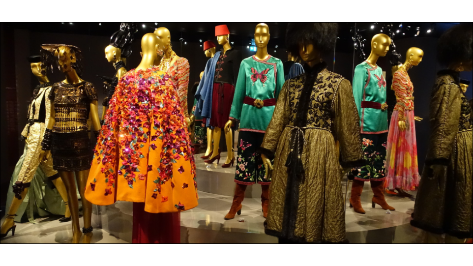 Для придания определённой сценической драматичности композициям на подиумах и в зале художник-декоратор Кристоф Мартин (Christophe Martin) выбрал черный фон, на котором эффектно воспринимаются манекены с моделями одежды. Эта часть экспозиции в музее – с аудиовизуальным сопровождением (короткометражные фильмы, музыка, фотографии, рисунки с эскизами одежды).
