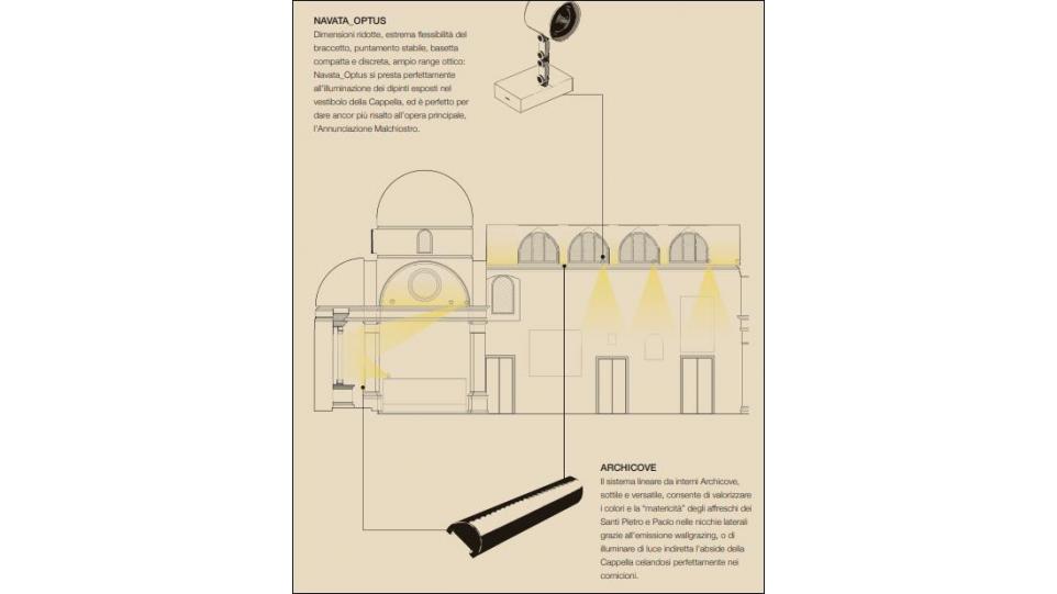 Проект модернизации освещения интерьера был инициирован компанией Rotary Club Treviso и Studio Tecnico Eng. Carlo Chiodin и Arch.