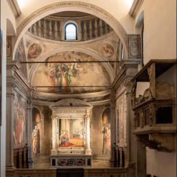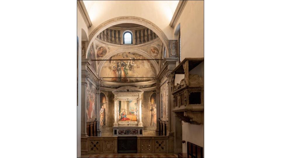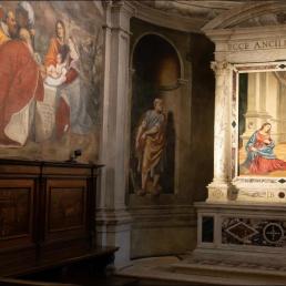 Внутренние достопримечательности включают часовню Малькиостро, спроектированную Туллио и Антонио Ломбардо, расписанную фресками Иль Порденоне, где находится «Благовещение Малькиостро» Тициана и два полотна Париса Бордоне. Большая фреска «Непорочное зачатие» в апсиде принадлежит Антонио Бени.