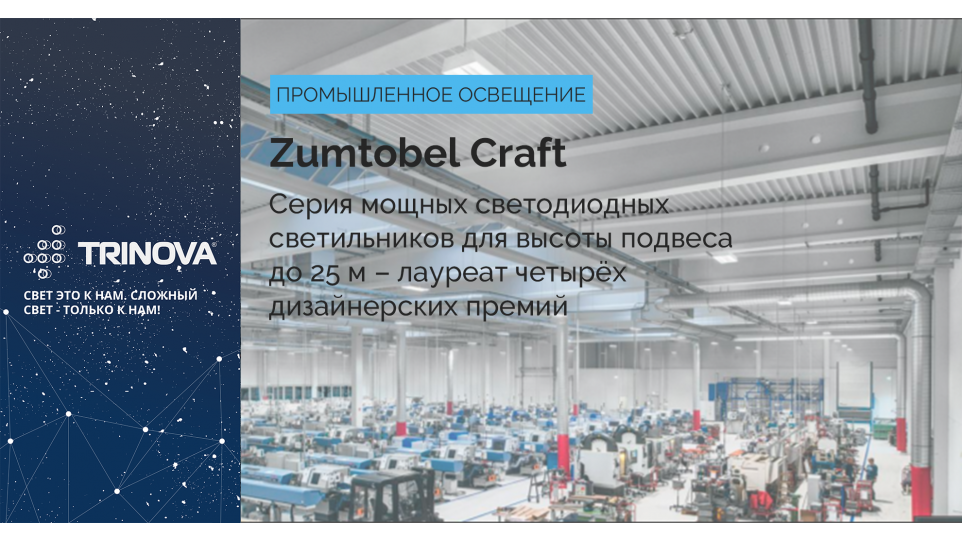 Пример модернизации освещения цеха: замена светильников с люминесцентными лампами старого поколения на LED-светильники серии СRAFT.