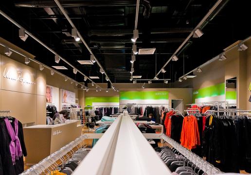Comfortable and individual lighting in brand-name clothing store The North Face