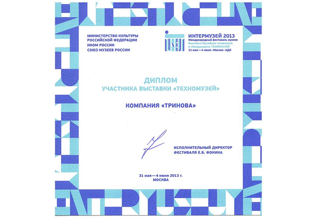 Компания ТРИНОВА приняла активное участие в международной выставке "Интермузей-2013", которая проходила в Центральном Доме Художника с 31 мая по 4 июня.
