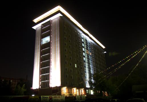 Компания ТРИНОВА выполнила работы по архитектурному освещению фасадов гостиницы Ramada, расположенной по адресу: Москва, Каширское шоссе, вл.41.