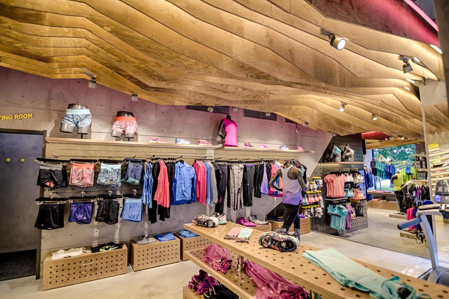 STRIDE - специализированный спортивный магазин, предлагающий профессиональным бегунам и любителям бега широкий ассортимент беговой экипировки, спортивного питания и литературы. Динамичный дизайн магазина, передающий и подчеркивающий красоту бега, был дополнен акцентными светильниками.