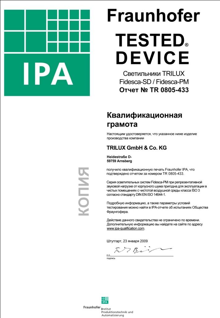 Квалификационная грамота TRILUX Fidesca