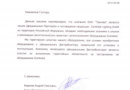 Письмо от ZUMTOBEL